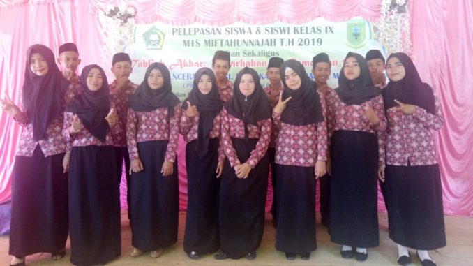 DESA MEKAR JAYA – KIM Mekar Jaya. Berbeda dari tahun-tahun sebelumnya dan beberapa sekolah lainnya, Pelepasan siswa kelas IX MTs Miftahunnajah kali ini dilaksanakan tanpa diiringi dengan musik melainkan dikolaborasikan dengan kegiatan Tabliq Akbar dalam rangka menyambut bulan suci Romadhan yang tinggal 2 hari lagi.